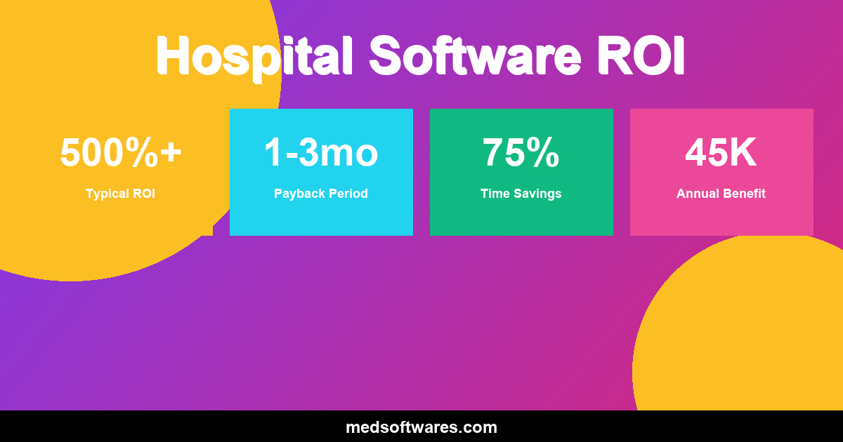 Most hospitals see positive ROI within 1-6 months. With low-cost solutions like HospitalOS, payback can be under 30 days.